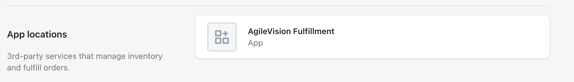 A successful call will result in a new fulfillment method (AgileVision Fulfillment in this case). A new, “app location” will be added to the “Locations” menu.